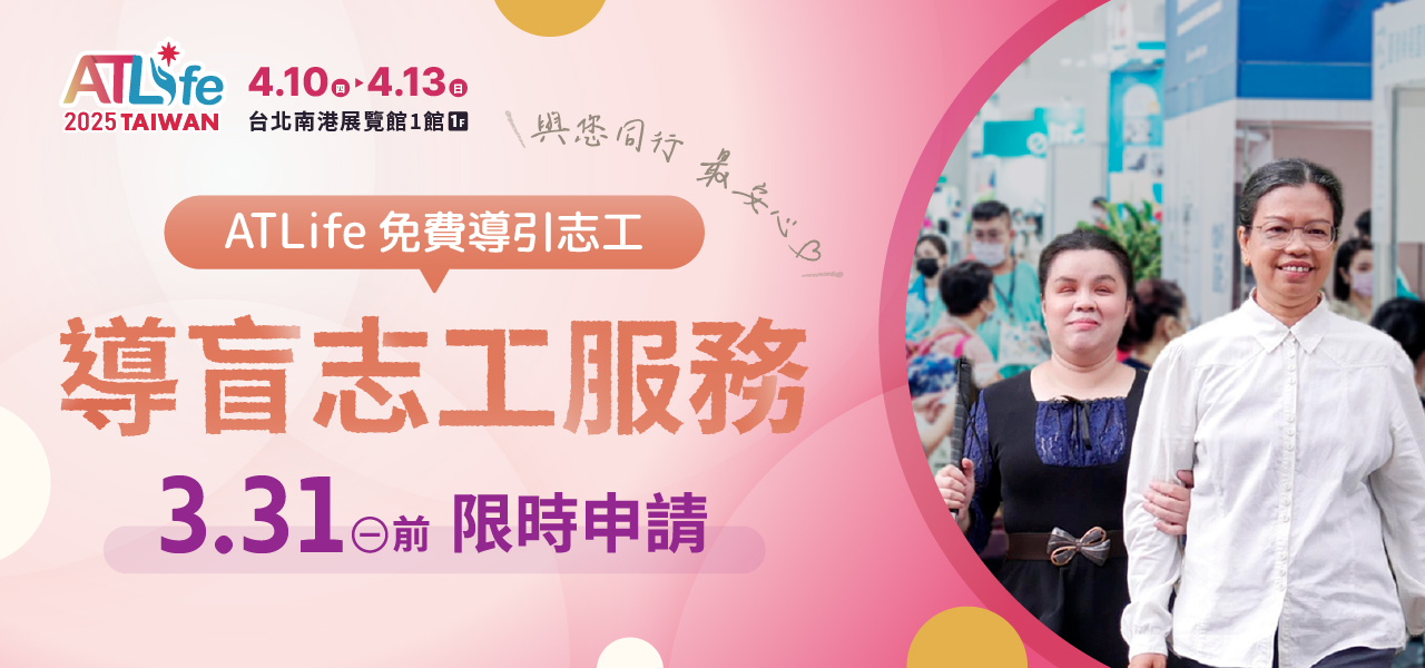 展期間陪伴並協(xié)助視障者參觀ATLife展區(qū)。不含導(dǎo)覽服務(wù),請申請者事先安排欲參觀攤位。