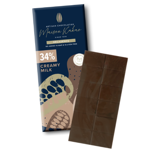 一款奢華滑順的牛奶巧克力,可可含量高達34%。 巧克力完美平衡了奶油的香甜與可可的濃鬱醇厚。專為追求美好生活的人士打造的手工臻品。