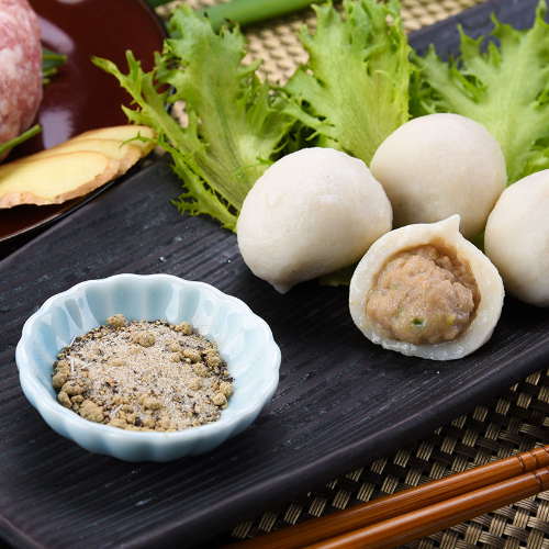 ?外皮選用新鮮魚漿製作 ?口感Q彈 ?肉餡使用臺(tái)灣上等新鮮豬肉,鮮嫩爆汁的口感