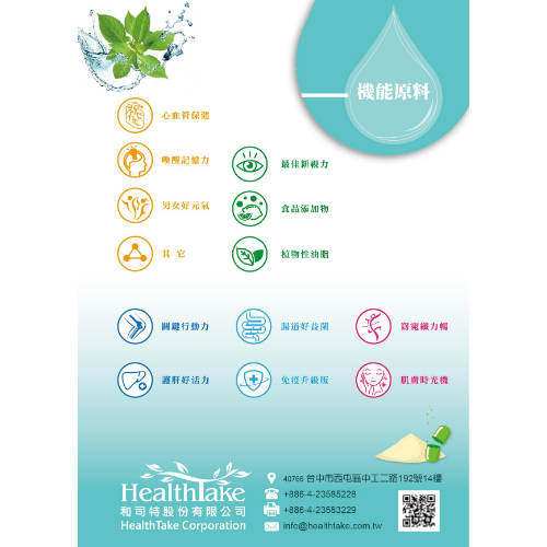 effectiveness and stability of final products.Besides import and export services for health food materials,Healthtake also provides comprehensive services,including product development professional