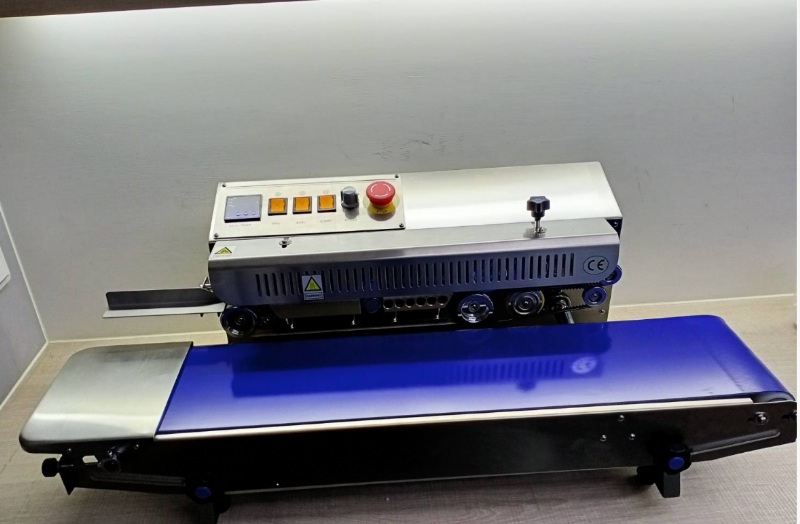 Fully gear-driven transmission ensures stable operation, extending the lifespan of parts and providing beautiful seals. ● Multi-functional: capable of sealing, embossing, and printing (optional accessories available). ● Controlled by an IC board, making maintenance and repair extremely simple. ● Conveyor belt speed is steplessly adjustable. ● Can use Teflon or steel belts, suitable for sealing various plastic bags, laminated bags, and aluminum foil bags. The conveyor table can be adjusted up, down, forward, and backward to accommodate different bag sizes. ● Equipped with a cooling fan to enhance seal integrity. ● Multiple safety protection measures. ● Suitable for sealing a variety of products including food, powders, granules, solids, hardware, electronic components, stationery, bread, medical instruments, and more. ● Made of stainless steel
