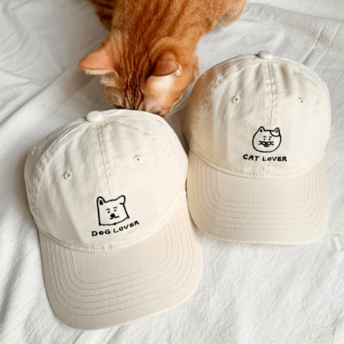 可愛貓狗-奶油色棒球帽
