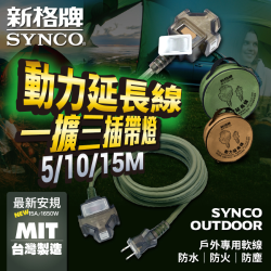SYNCO 新格牌 2孔1切3座 防塵 動(dòng)力線延長線系列