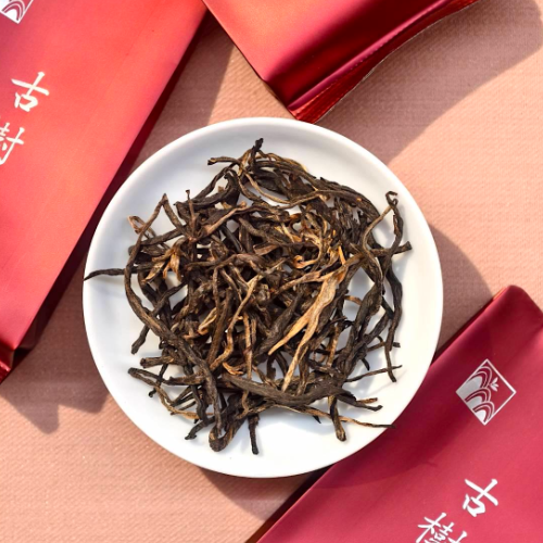 Carefully selected from Bulang Mountain’s Lao Banzhang village at an elevation of around 1,700 meters, this black tea is crafted from ancient trees over 500 years old. Using a unique sun-dried Yunnan process, it is refined to perfection. The tea exudes rich floral, honey, and sweet potato notes, with a liquor of brilliant ruby-red clarity. The taste is pure, full-bodied, and sweet, with enduring fragrance and remarkable steeping durability. (The supreme amber red—truly the “Hermès of black teas”!)